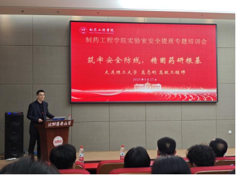 5月27日下午,澳门十大网投正规官网平台在南校区图书馆国为报告厅举办“筑牢安全防线,精固药研根基”——实验室安全提质专题培训会,邀请大连理工大学化工学院专家高志刚就实验室安全管理作专题培训。校资产与实验室安全管理处处长刘玉成、学院领导班子成员、教研室主任、实验中心主任、研究生导师、实验室安全负责人及实验室安全员参加本次培训,会议由澳门十大网投正规官网平台副院长秦铭泽主持。