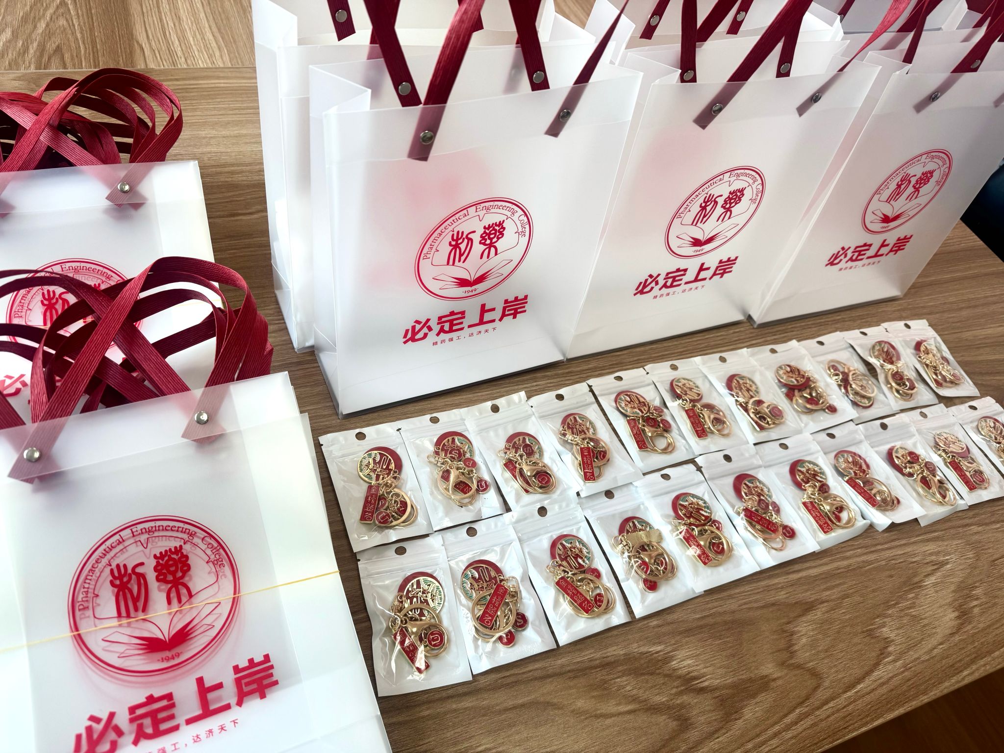 冬日送祝福,情暖考研人,学院为考研学子定制了寓意满满的“考研暖心小礼物”,礼物包括“必定上岸”手提袋和“金榜提名”钥匙扣。一份份精心准备的礼物,一句句真挚温暖的话语,承载着学院对考研学子们的美好祝愿。