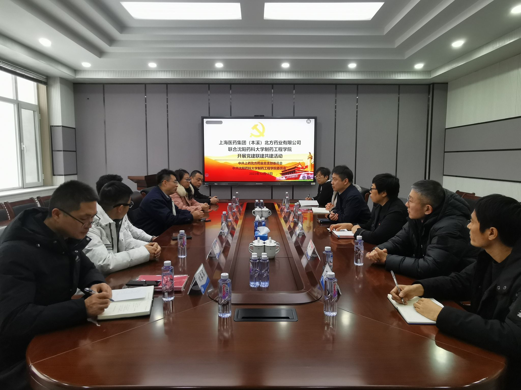 为持续深化校企合作,夯实校企双方在党建工作、科研合作、协同育人等方面的深度融合,12月15日,上海医药集团(本溪)北方药业有限公司党总支书记、副总经理吕锡伟,党总支组织委员、BD部长董全亮,党总支宣传委员、综合办公室主任助理付长东,党总支纪检委员、人力资源部长马丹,第三党支部书记、技术研发部副部长黄启,生产部长刘绍杰等49名中共党员来到澳门十大网投正规官网开展党建联建共建活动。学院党委书记李哲,院长刘洋,学校教学质量保障与评估中心主任、副院长赵燕芳,学院团委书记、教师代表、辅导员代表、专职组织员和医疗器械学院孙伟副教授出席了相关活动。