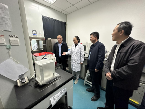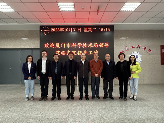10月31日,福建省人民政府参事、致公党厦门市委一级巡视员徐平东,厦门市科学技术局党组成员、副局长曹伟民,厦门翔安创新实验室成果转化办主任谢靖凡,厦门市科学技术局招商办专员吴晓银一行4人来到澳门十大网投正规官网,就推动双方开展新药协同创新进行调研。学院院长刘洋、副院长赵燕芳、副院长郭永学、药物化学系主任刘丹、化学实验中心主任郭春参加调研。