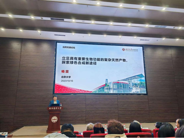 杨震教授作了题为“立足具有重要生物活性的复杂天然产物,探索绿色合成性新途径”的学术报告,介绍了课题组近年来利用光化学反应为关键步骤完成一系列复杂天然产物的合成工作,特别是,利用Norrish-Yang反应为关键步骤,实现六海洋天然产物(+)-cyclobutastellettolide B3的首次不对称全合成等。