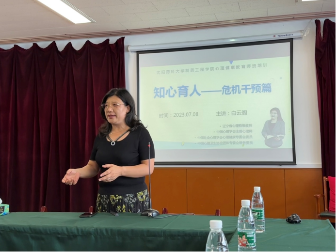 为切实增强学院教师心理健康教育工作的专业性和科学性,进一步提升学院教师的心理育人水平及心理危机应对能力,7月8日上午,澳门十大网投正规官网平台举办“知心育人”心理健康团体辅导工作坊,特邀辽宁省心理特级教师白云阁博士在校本部图书馆第二学术报告厅作心理危机干预培训,学院党委书记李哲、党委副书记刘阳、各教研室教师代表、班导师代表及全体辅导员参加培训,培训会由院党委书记李哲主持。
