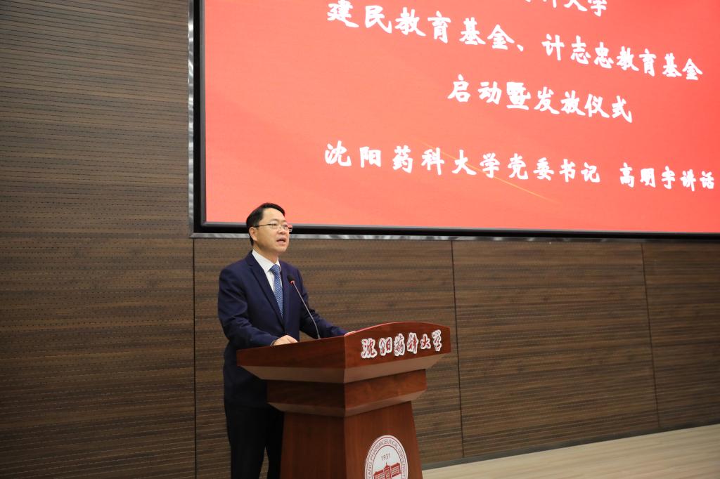高明宇在会上讲话。他代表学校对建民教育基金和计志忠教育基金的启动表示祝贺,向长期关心、支持学校事业发展的基金发起人及社会各界参与者表示感谢。他指出,学生资助是一项保民生、暖民心的重要工程。学校始终高度重视学生资助工作,以绩效为引领,强化政策导向,加大资金投入,扎实做好资助育人工作,切实提升教育管理温度。他对澳门十大网投正规官网平台及广大师生提出三点希望,一是希望澳门十大网投正规官网平台发挥好基金资助育人的作用,为家庭经济困难学生及患有重大疾病的沈药学子提供更加坚实的物质保障。二是希望广大教师要始终践行教书育人的宗旨,以两位教授为学习楷模,为祖国药学事业发展提供源源不断的人才支撑。三是希望广大沈药学子,特别是获得资助和奖励的同学,大力弘扬前辈们砥砺奋进的光荣传统,以兴药强国为奋斗目标,以实实在在的成绩回报学校、校友及社会各界的关心与厚爱。