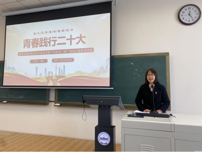 刘阳作“青春践行二十大”主题讲座,对党的二十大报告进行了细致解读,使同学们对党的二十大精神有了更深入的了解。她对同学们提出三点期望,希望同学们能够志存高远,勇担使命,做一个怀抱梦想的沈药人;勤奋学习,砥砺奋进,做一个本领过硬的沈药人;立德修身,笃行致远,做一个爱校荣校的沈药人。
