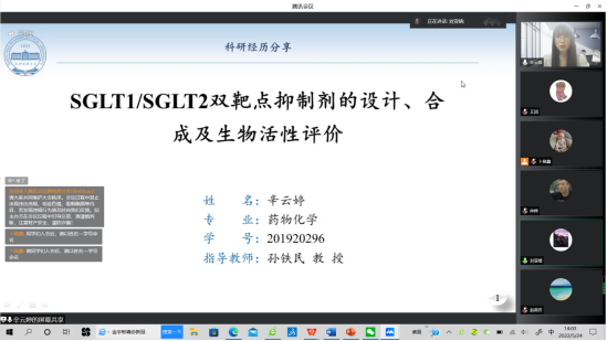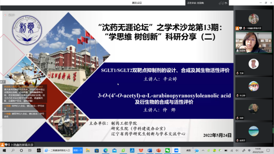 为营造学院研究性科研生态,拓宽师生科研视野,在研究生院(学科建设办公室)及辽宁省药学研究生创新与学术交流中心的支持下,5月24日下午,澳门十大网投正规官网平台以线上形式举办了“沈药无涯论坛”之学术沙龙第13期“学思维 树创新”科研分享活动(二)。2019级硕士研究生辛云婷和仲烨进行了精彩报告,沙龙由药物化学教研室刘亚婧教授主持,300余人参加了此次学术沙龙。