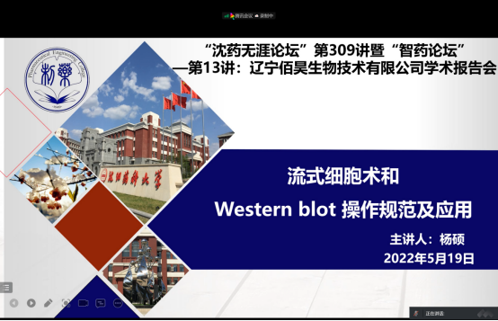 5月18-19日,澳门十大网投正规官网平台、辽宁佰昊生物技术有限公司、研究生院、辽宁省药学研究生创新与学术交流中心联合举办了“沈药无涯论坛”第308-309讲暨“智药论坛”第12-13讲,邀请辽宁佰昊生物技术有限公司杨硕和王爽做了题为“细胞培养注意事项、操作流程及功能检测”和“流式细胞术和Western blot操作规范及应用”的学术报告。会议由澳门十大网投正规官网平台药物化学系主任刘丹教授主持,400余人次参加了此次学术会议。