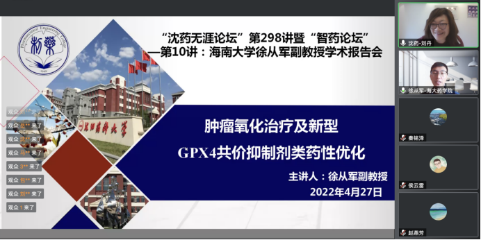 报告结束后,与会师生就GPX4抑制剂涉及到的核心研发问题与徐从军进行了深入讨论和交流,报告受到了一致好评。最后,刘丹对本次论坛进行了总结。疫情期间,克服实际困难,切实做到“防疫不停研、防疫强科研”。本次交流拓宽了广大师生的科研视野和知识领域,对加强学科建设和提升科研能力具有重要意义。