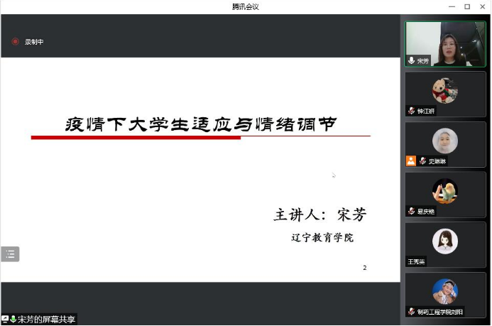 4月8日,澳门十大网投正规官网平台特邀辽宁教育学院高校发展研究与评估所副所长宋芳博士为师生做“‘同心战疫 温暖前行’——疫情下大学生适应与调节”线上心理健康讲座。700余名师生参加了会议,会议由澳门十大网投正规官网平台党委副书记刘阳主持。