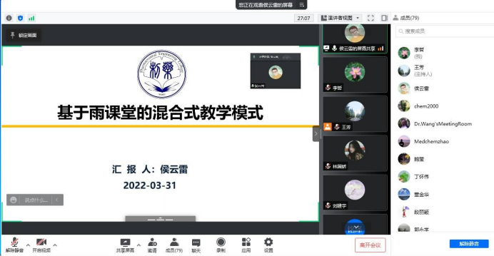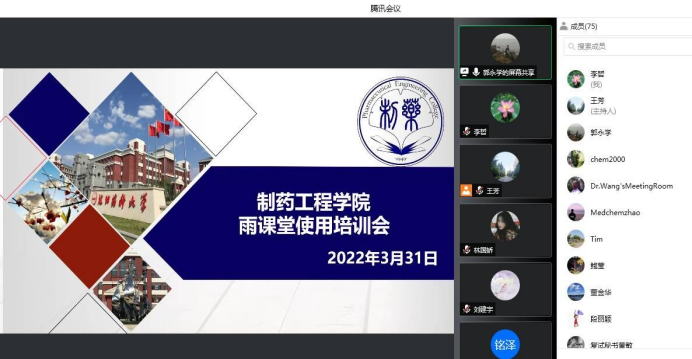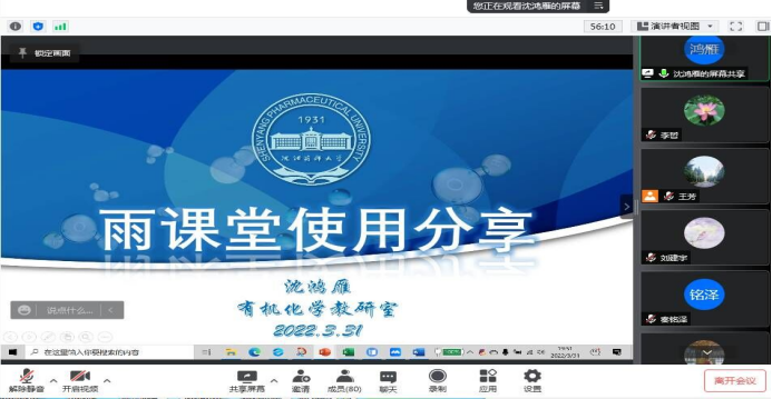 为帮助学院教师更加全面掌握线上教学软件的使用方法,提高线上教学效果,保障疫情期间本科教学质量,3月31日,澳门十大网投正规官网平台举办雨课堂使用线上培训会,本次培训会特请药物化学教研室侯云雷老师和有机化学教研室沈鸿雁老师进行经验分享,院领导班子成员、学院教师参加了会议,会议由副院长郭永学主持。