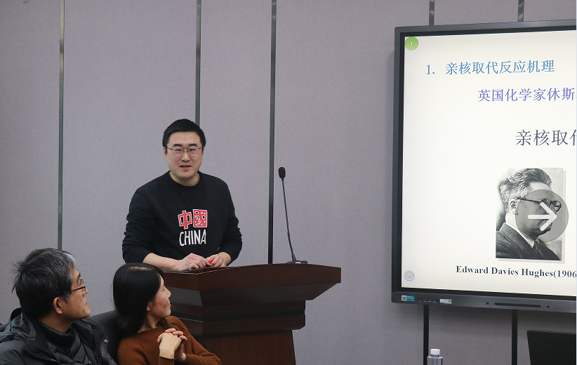 随后,有机化学教研室的两位即将走向讲台的年轻教师陈建超和李汨进行了《有机化学》课程的试讲。郭永学副院长及参会教师进行了认真点评,郭永学从讲课节奏的把控、教学重点的突出、PPT的设计三个方面对青年教师提出了改进意见,其他参会教师也提出了很多宝贵意见,有助于进一步促进青年教师的成长。