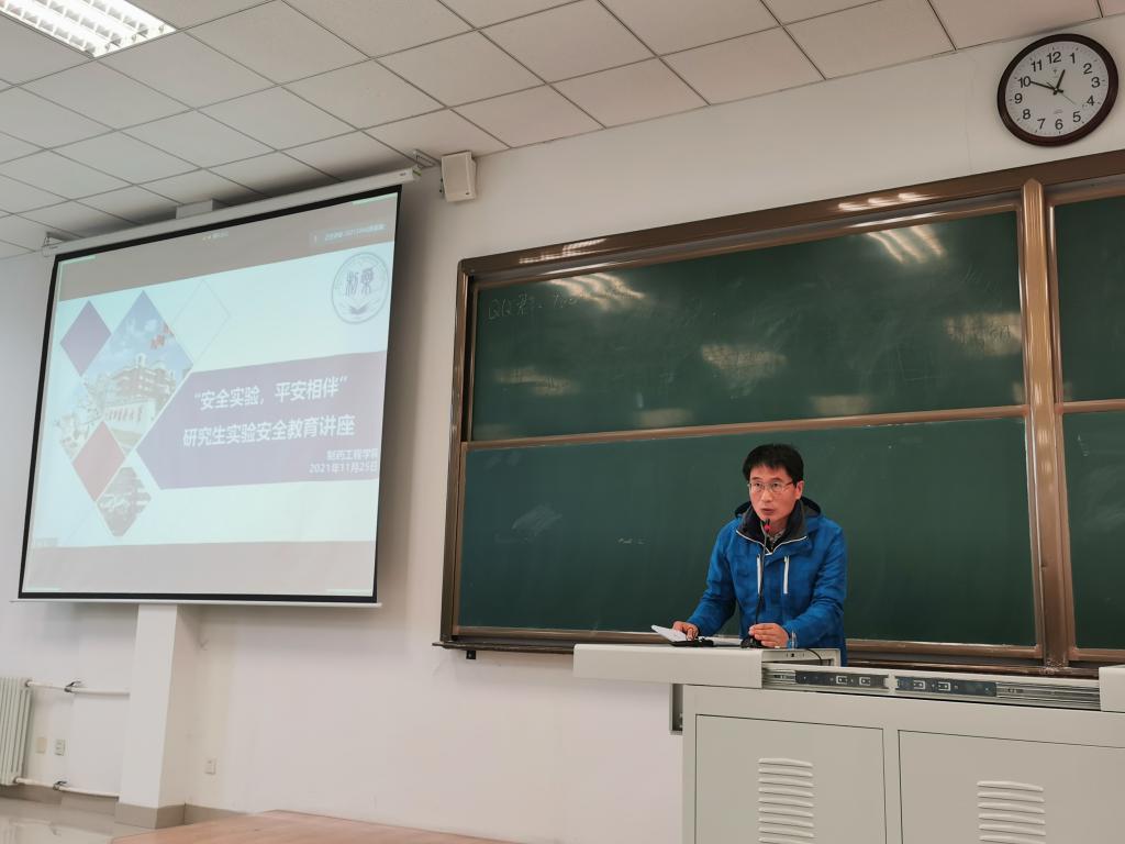 为强化研究生实验安全意识,提高研究生个人防护能力,避免各类实验安全事故的发生,11月25日,澳门十大网投正规官网平台在播馨楼104、105教室举行“安全实验,平安相伴”主题研究生实验室安全教育讲座。本次讲座特邀学校后勤管理处物资供应科科长南德荣、校园管理科科长程玉东和澳门十大网投正规官网平台化学实验中心副主任王庆河担任主讲人。讲座由学院党委副书记刘阳主持,学院党委书记李哲、研究生辅导员及全体研究生参加了本次讲座。