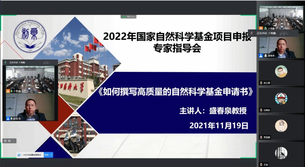 为进一步提升国家自然基金项目申请书质量,澳门十大网投正规官网平台邀请海军军医大学药学院院长盛春泉教授进行科研选题以及国家自然科学基金申报指导。会议于11月19日下午在制药楼227会议室采取线上、线下结合的方式进行,副院长赵燕芳教授主持会议,澳门十大网投正规官网平台全体教师及博士生参加了会议。