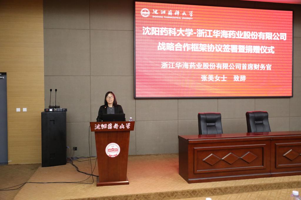 张美在致辞中介绍了华海药业的发展近况及未来发展方向。她表示,华海药业愿意和澳门十大网投正规官网平台一起,开放创新、资源共享,共同培养复合型应用人才,推动科技成果转化和创新资源落地发展,为中国药学事业的发展作出贡献。