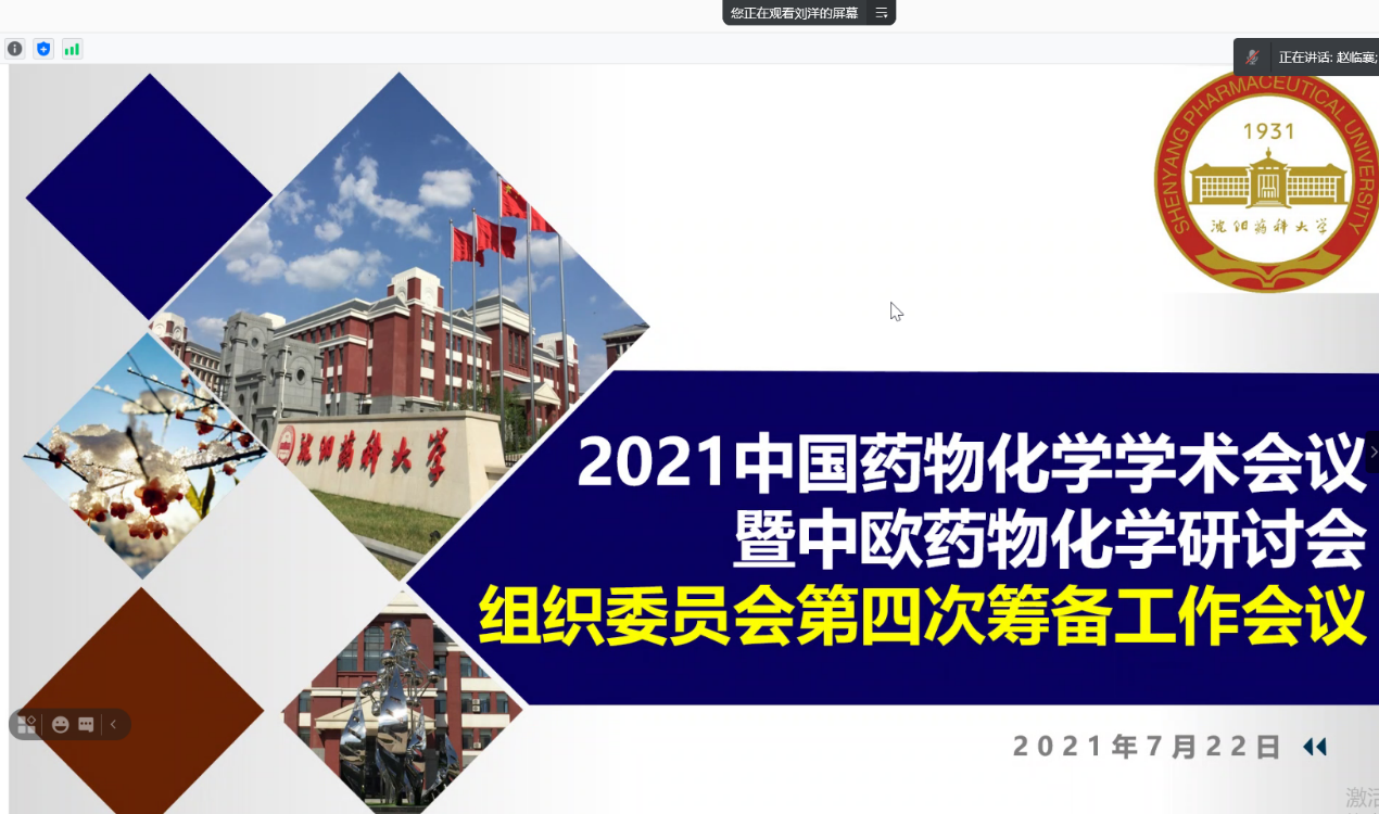 7月22日,澳门十大网投正规官网平台召开2021中国药物化学学术会议暨中欧药物化学研讨会组织委员会第四次筹备工作会议。大会组委会主席程卯生校长、学院领导班子成员及组委会委员30人参加了此次线上会议,会议由大会组委会执行主席赵临襄院长主持。