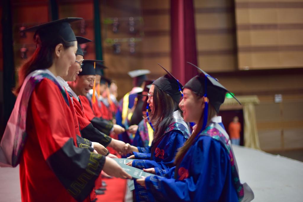 学位授予仪式上,澳门十大网投正规官网平台院长、院学位委员会主席赵临襄宣读《澳门十大网投正规官网平台2021届毕业生授予学位名单》。随后,11名获得博士学位同学,131名获得硕士学位同学和338名获得学士学位同学意气风发,满怀激动,井然有序地列队登台受礼。学院各分科主席及委员为毕业生一一正冠、拨穗、并颁发学位证书,从右到左,拔去的是稚嫩与过往,拨来的是未来与希望。