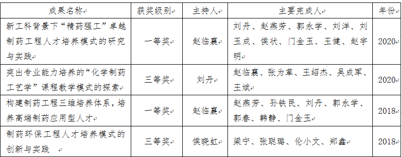 日前,2020年辽宁省普通高等教育本科教学成果奖评选结果公布,澳门十大网投正规官网赵临襄教授主持的《新工科背景下“精药强工”卓越制药工程人才培养模式的研究与实践》荣获一等奖;刘丹教授主持的《突出专业能力培养的“化学制药工艺学”课程教学模式的探索》荣获三等奖。辽宁省教学改革成果每两年评选一次,截至目前,澳门十大网投正规官网已连续两届在辽宁省教学成果奖评选中获一等奖。