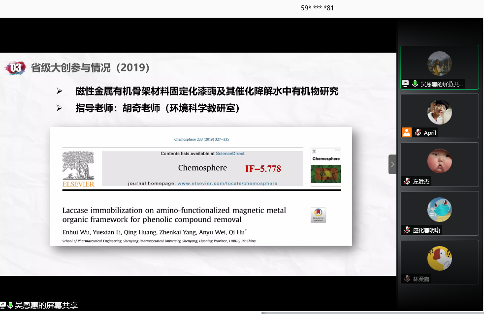 动员会上,副院长郭永学介绍了大学生创新创业训练项目(以下简称大创项目)产生的背景、申报流程和结题要求,希望在座学生能利用这个契机,加入到大创项目中去,锻炼自己。教学秘书门金玉介绍了大创项目与创新学分申报的关系,引导学生能有效利用大创项目为自己的创新学分添加一分光彩。本次动员会,学院还邀请了2020届毕业生吴恩惠同学就自身的经验和在大创项目中的收获与参会的同学进行了交流。吴恩惠同学在大学期间参与大创项目两项,项目成果显著,分别以第一和第二作者身份公开发表两篇SCI论文,获得创新学分共累计11分。吴恩惠同学的分享为在校的学生积极参与大创项目中起到示范作用。