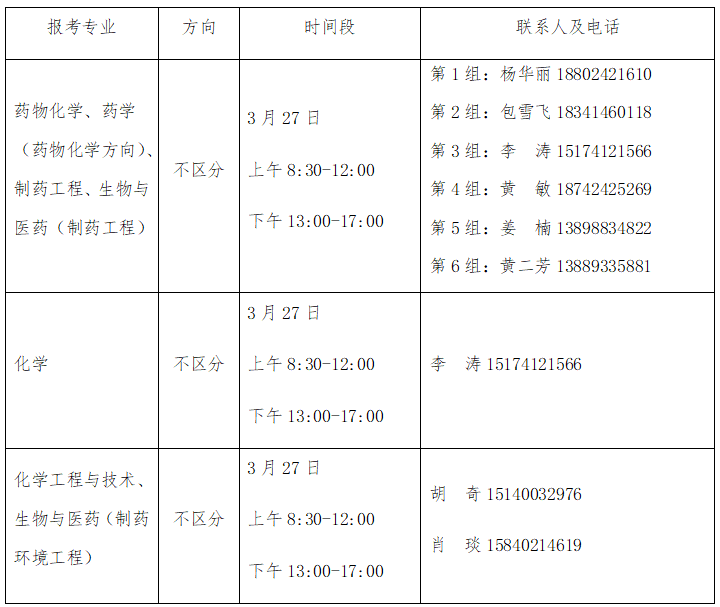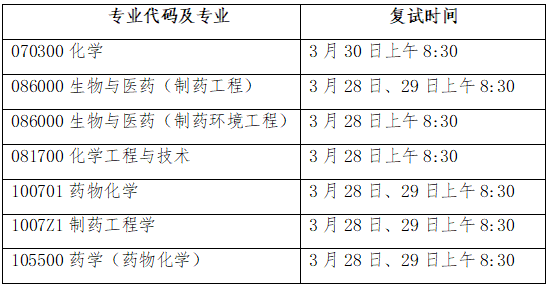 1.考生报考专业代码和专业名称为: 100701药物化学、105500药学【药物化学研究方向】、1007Z1制药工程、086000生物与医药【制药工程】。(具体复试内容见附件《澳门十大网投正规官网平台2022年药物化学、制药工程学科硕士研究生复试实施细则》)