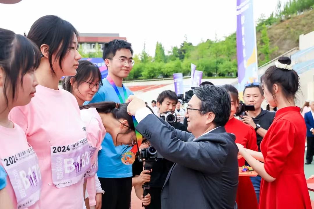校长程卯生为团体赛亚军队伍颁发奖牌和证书