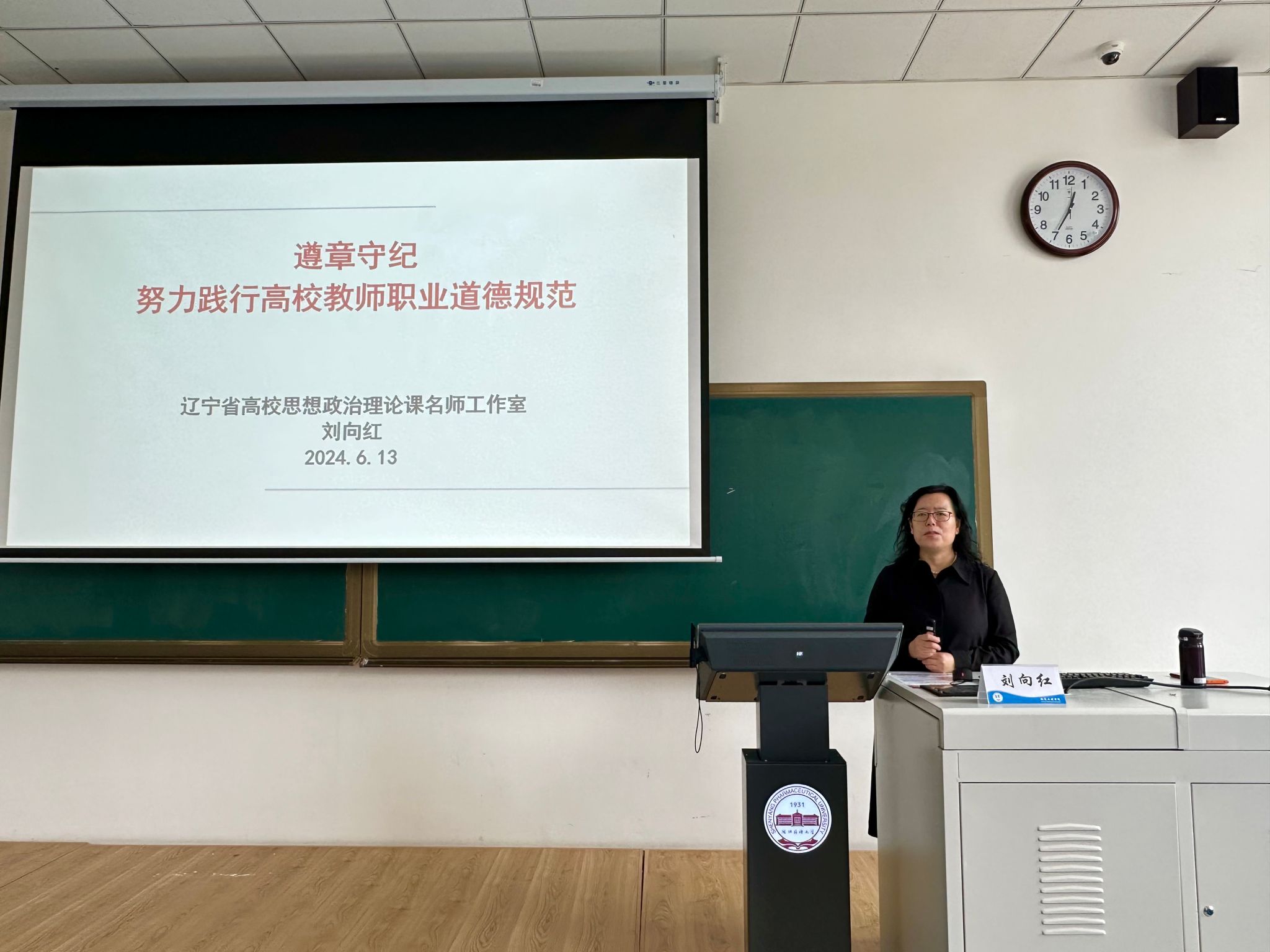 为深入开展党纪学习教育,澳门十大网投正规官网平台于6月13日在南校区播馨楼204召开师德师风专题培训会,邀请了澳门十大网投正规官网平台党委党校教务长、党委组织部副部长(兼)、辽宁省高校思想政治理论课名师工作室刘向红教授作题为“遵章守纪,努力践行高校教师职业道德规范”专题讲座。学院领导班子成员、学院教师参加了会议,培训会由学院党委书记李哲主持。