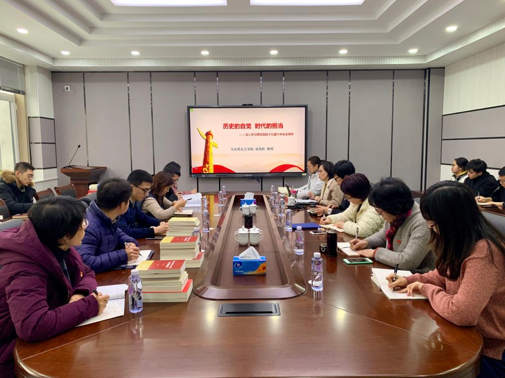 11月30日,澳门十大网投正规官网平台党委在制药楼227会议室召开理论学习中心组学习会,专题研讨深入学习贯彻党的十九届六中全会精神,特邀马克思主义学院形势与政策教研室徐雪松教授作《历史的自觉 时代的担当——深入学习贯彻党的十九届六中全会精神》专题讲座,学院领导班子成员、系主任、院工会主席、党支部书记、全体学生工作干部参会,会议由院党委书记李哲主持。